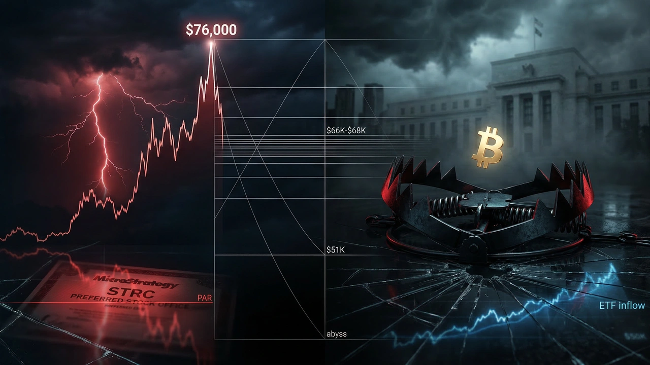 Historisch gesehen war eine solche Pause ein bärisches Signal. Als STRC zuletzt im Januar unter den Nennwert fiel, verlor Bitcoin in den darauffolgenden drei Wochen fast 40 % [3]. Ein vergleichbarer Rückgang im November 2024 ging einem BTC-Kursverlust von rund 25 % voraus [3]. Da Bitcoin derzeit gegen die obere Grenze eines von Analysten beschriebenen Bear-Flag-Musters nahe 76.000 $ stößt, könnte ein bestätigter Ausbruch nach unten den Bereich von 66.000 bis 68.000 $ ansteuern – mit extremeren Szenarien, die einen Rückgang in Richtung 51.000 $ prognostizieren [3].