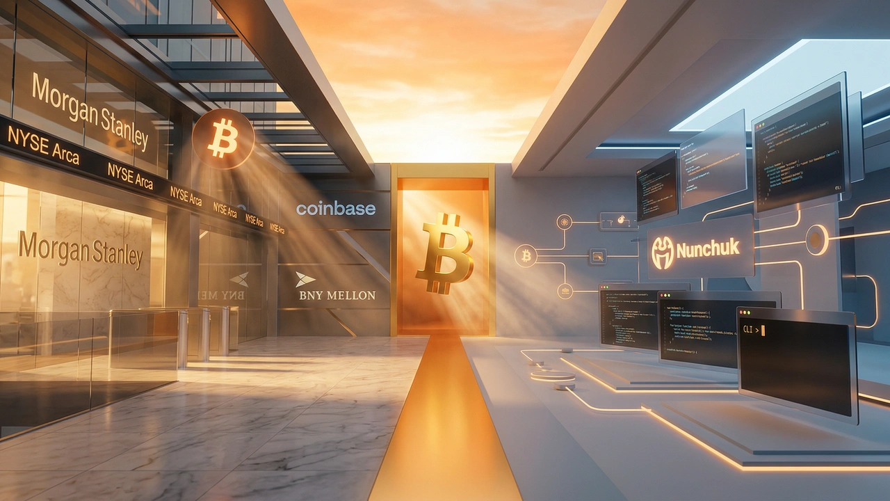 Morgan Stanley launches the cheapest U.S. bank-linked Bitcoin ETF on record while Nunchuk releases open-source AI agent tools — together signaling a new phase of Bitcoin's institutional infrastructure buildout.
